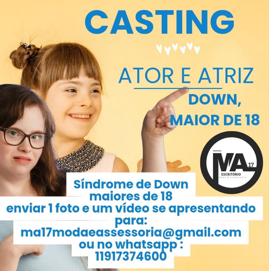 Casting Ator/ Atriz – Down – Maior de 18 modaeass January 24, 2025 Casting para publicidade. Enviar 2 fotos e um vídeo se apresentando para EMAIL-CLIQUE AQUI ou no whatsapp 11 917374600 Continue Reading Previous: Casting publicidade 📺🎥Next: Audição para Ballet SP Related News Casting Venha fazer parte do escritório de Moda e Assessoria MA17! modaeass August 2, 2025 Casting Casting Moda modaeass February 17, 2025 Casting Casting 2025: Inscrições Abertas modaeass February 12, 2025