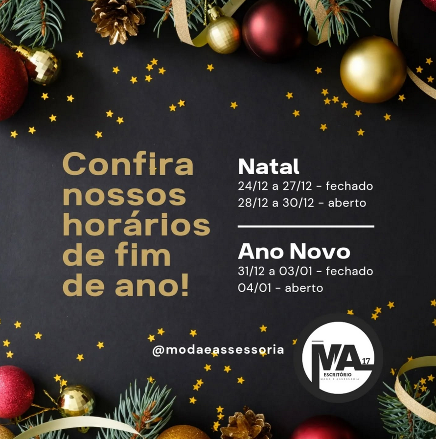 A equipe do Escritório de Moda e Assessoria MA17 deseja a todos um Natal e um Ano Novo incríveis!